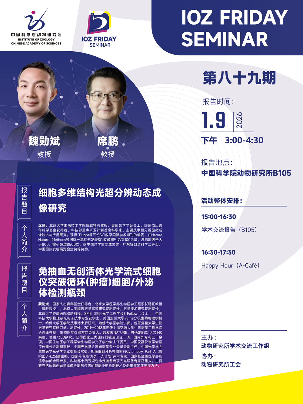 IOZ FRIDAY SEMINAR 第八十九期:细胞多维结构光超分辨动态成像研究、免抽血无创活体光学流式细胞仪突破循环(肿瘤)细胞/外泌体检测瓶颈