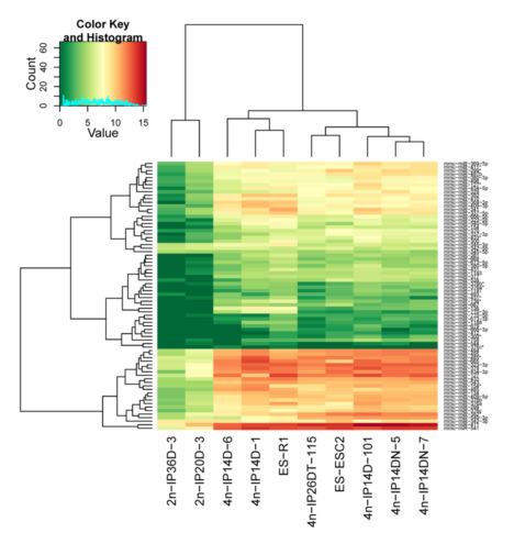 To address the above question, Prof. Qi Zhou teamed up with Prof. Xiu-Jie Wang to study the expression profiles of genes, small RNAs and proteins of multiple mice ES and iPS cell lines with different developmental potentials. A genomic region encoding several genes and a large cluster of microRNAs in the mouse genome was identified, which exhibited high expression in fully pluripotent embryonic stem cells and iPS cells, but only had very limited or no expression in partially pluripotent iPS cells, and the degree of activation of this region was positively correlated with the degree of pluripotency of iPS cells, as proved by multiple examined cell lines. These results indicated that the activation of this genomic region can serve as a marker to evaluate the pluripotency status of mouse stem cells and iPS cells. As coding genes and non-coding RNAs encoded in this genomic region are highly conserved in mammals, it will greatly promote the study and clinical application of iPS cells if the same expression pattern holds for human ES and iPS cells.