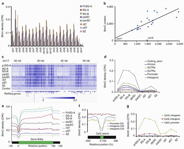 The research team led by Dr. Chunsheng Han in the State Key Laboratory of Reproductive Biology published a paper entitled “Dynamics of 5-hydroxymethylcytosine during mouse spermatogenesis” in Nature Communications on June 13, 2013. Their work has elucidated the genomic distribution and dynamic changes of 5-hydroxymethylcytosine (5hmC), a recently recognized stable intermediate of DNA demethylation, as well as its correlations with the mRNA levels of different types of genes during mouse spermatogenesis.