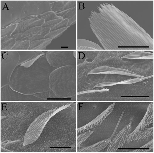 Our groups has interests in a wide range of aspects of scales, including morphology, function and origin. Scales are often observed in insects, from the bristletails and silverfish to lepidopterans. As a basal group of Hexapoda, Collembola bears body scales in some groups, where scales were considered to be characters transformed from setae by most entomologists. Morphology of those scales is highly diversified (figure 1), and is of great importance for the taxonomy of Collembola.