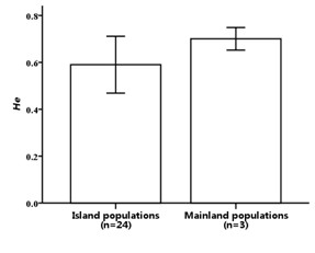 Fig 1. Genetic diversity of island populations as compared to related mainland populations
