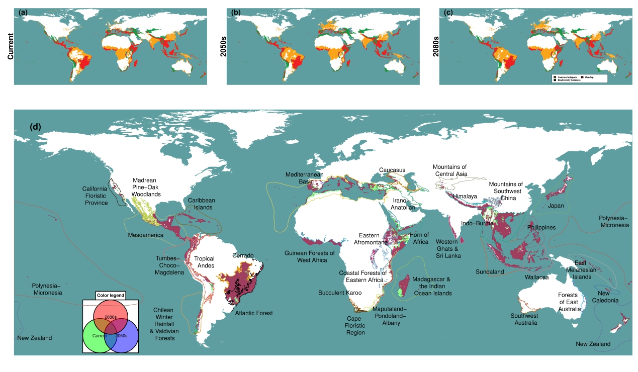 Biological invasions are a major threat to global biodiversity and ecosystem functioning. Understanding where invasion hotspots are located and how they overlap with biodiversity hotspots is crucial for prioritizing conservation efforts to prevent or mitigate impacts from alien species on global biodiversity.