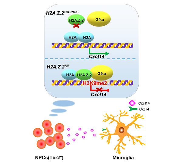 By RNA-seq analysis of H2A.Z.2 conditional knockout mice in NPCs, the researchers demonstrated that the chemokine Cxcl14 plays an important regulatory role in the development of microglia in the brain.