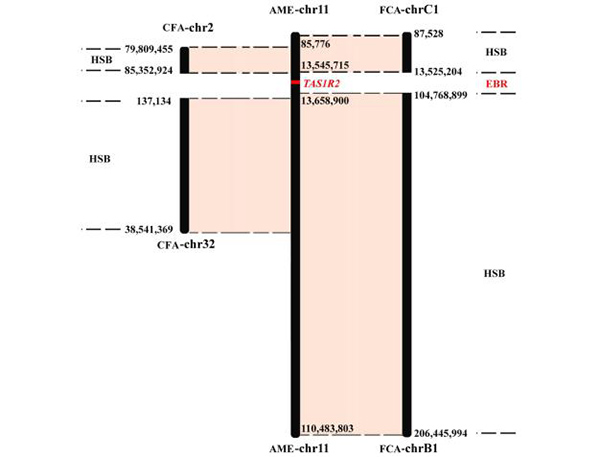 Fig.2 A case of evolutionary breakpoint region related with the sweet receptor gene TAS1R2