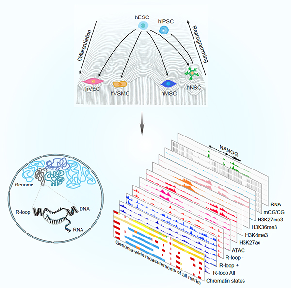 Recently, scientists from the Institute of Zoology of the Chinese Academy of Sciences (CAS), Tsinghua University and Beijing Institute of Genomics of CAS have worked jointly and systematically characterized R-loops, DNA methylation, histone modifications, and chromatin accessibility in human pluripotent cells and their differentiated derivatives. Notably, they demonstrated a multi-faceted role of R-loops in cell fate determination that may serve as an additional layer of modulation on cell fate memory and cell plasticity. This study entitled "Genome-wide R-loop landscapes during cell differentiation and reprogramming" has been published online in Cell Reports on July 7th, 2020.