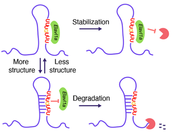 Fig.1 Schematic model shows that Elavl1a regulates RNA stability in a structure-dependent fashion
