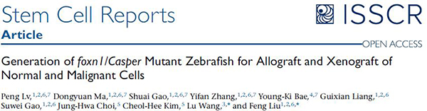 Recently,Feng Liu from Institute of Zoology (Chinese Academy of Sciences) and Lu Wang from Institute of Hematology and Blood Diseases Hospital (Chinese Academy of Medical Sciences & Peking Union Medical College) collaborate on a paper entitled “Generation of foxn1/Casper Mutant Zebrafish for Allograft and Xenograft of Normal and Malignant Cells” in Stem Cell Reports journal. This work introduces a new transparent immunodeficient zebrafish model, foxn1/Casper, which permits engraftment of allogenic or xenogenic cells without pre-condition.